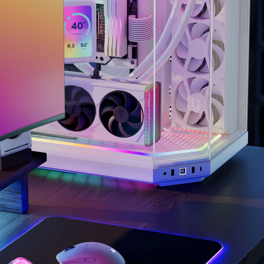 Son design flexible permet de l’installer dans différentes positions, que ce soit autour du boîtier, derrière les panneaux ou dans des zones spécifiques pour accentuer les composants internes. La finition blanche permet une meilleure réflexion de la lumière et un rendu plus propre dans les configurations claires ou “Panda”.