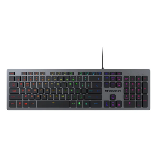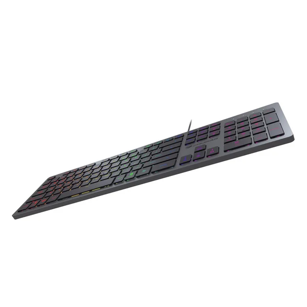 Clavier gaming filaire au design ultra-fin avec éclairage RGB, idéal pour le gaming et la bureautique.